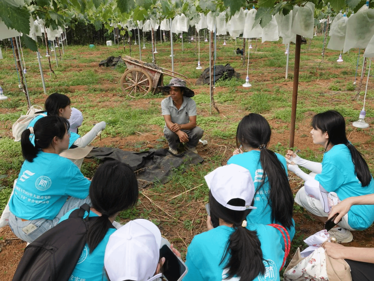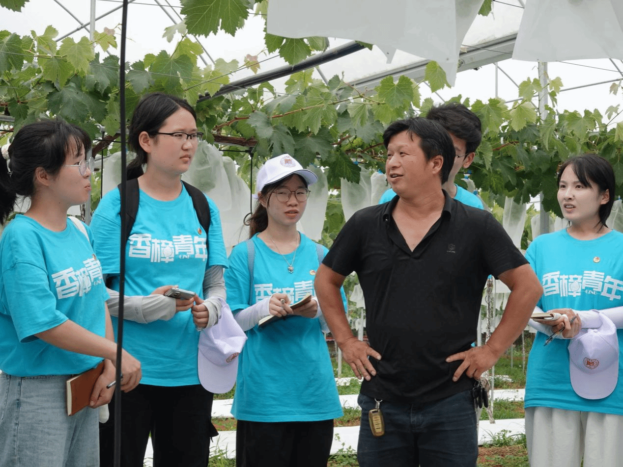 7月14日,服务队前往当地优质葡萄种植基地,全方位调研现代化种植模式。从棚架搭建的科学设计,到智能管理技术的应用,从葡萄品种改良方向,到品牌打造、市场推广实践,队员们深入考察学习。通过基地考察与田间实践相结合,把握葡萄产业从种植到销售全链条的痛点与发展潜力,与相关负责人交流研讨,共同寻找产业新出口,积极助力全村经济转型发展。