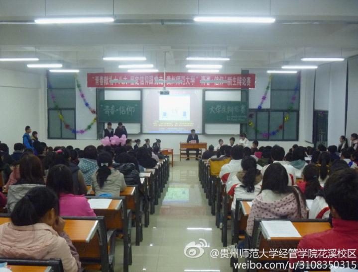 12月21日下午三点,校团委主办的《青春·信仰》新生辩论赛决赛在花溪校区GJ2521阶梯教室拉开帷幕。永利3044noc与国际旅游文化公司就“赛场选马更容易选到千里马还是伯乐选马更容易选到千里马”的辩题展开激烈对决。校团委副书记陈贵平老师、姚作舟老师以及校团委李正军老师、音乐公司党委组织员潘瑜老师担任此次比赛的评委。
