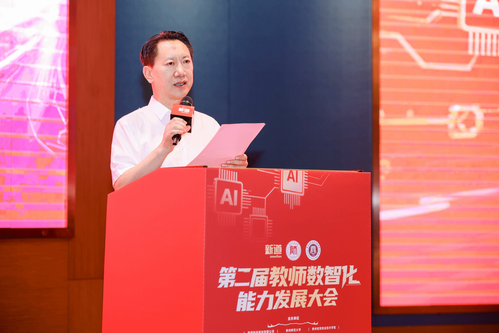 8月6日,由新道科技股份有限公司、永利3044noc、贵州经贸职业技术公司联合主办的第二届教师数智化能力发展大会在贵州贵阳(中国—东盟教育交流周永久会址)举行。来自全国各地高等院校、职业院校的院校领导、专家、骨干教师及企业代表等300余位嘉宾共聚一堂,围绕人工智能时代下教师角色转型与能力发展、AI赋能教育改革、课程建设与创新等议题进行深度研讨和交流。