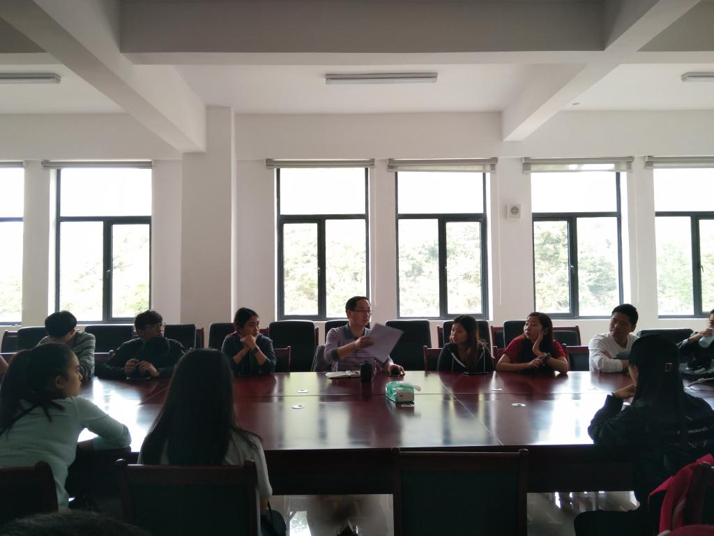 2018年4月11日下午,永利3044noc在9432会议室召开了职工座谈会。经济与管理公司党委副书记赵本喜、副经理杨馥榕、教学秘书俞郴、2016级辅导员向凯麟、2017级辅导员赵元钊出席本次座谈会。来自越南、老挝、柬埔寨、蒙古四个国家的20名职工参加了本次座谈会。