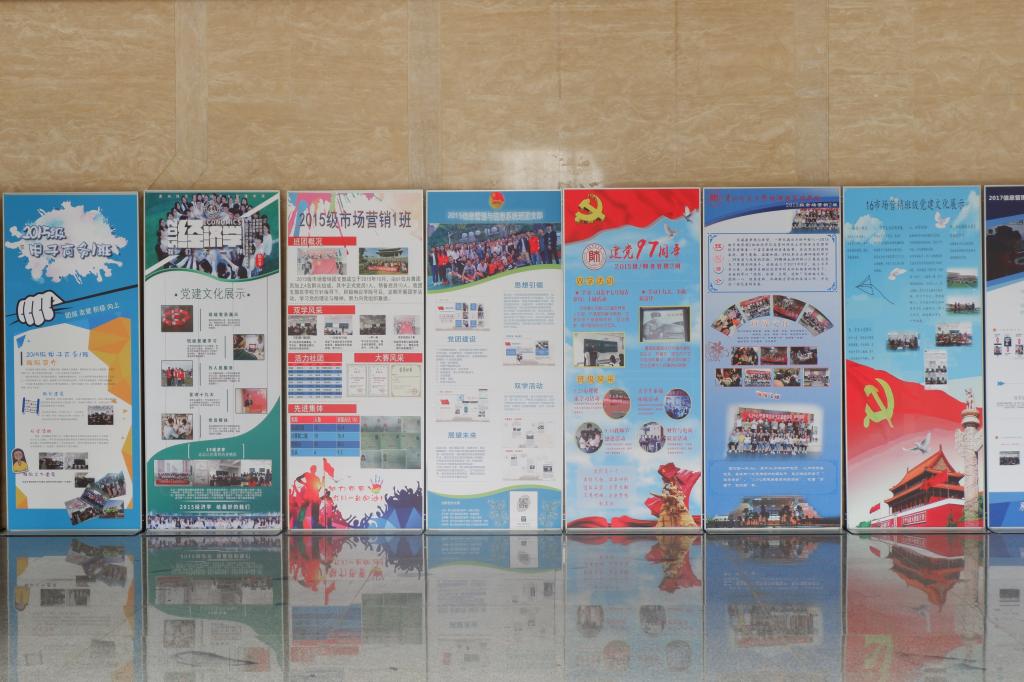 本次学习十九大系列活动包括微党课、班级党建文化大比拼、“不忘初心跟党走,牢记使命绘蓝图”歌·诵比赛、优秀党员、党务工作者、优秀双学集体及个人评比等活动。各班以海报的形式为载体,宣传党的思想、路线、方针,向全院师生展示班级本学年党建特色文化建设的情况和取得的成果。