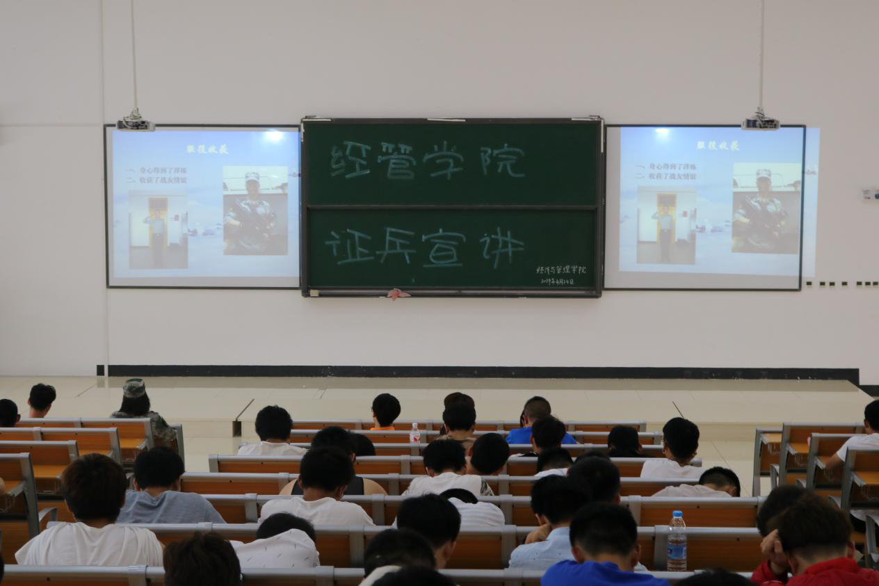 宣讲会上,泰田田、宋亚亚分别为同学们介绍了国家征兵入伍优抚政策和贵师大征兵优抚待遇办法,重点介绍了“三学、一考、一奖优”,即学籍优抚待遇、学业优抚待遇、学位优抚待遇、考研优抚待遇、奖励优抚待遇、评优评奖优抚待遇。此外,宋亚亚还耐心地为同学们讲解了应征入伍的条件和参军的主要流程。退伍军人骆耀培、梁进则为同学们分享了他们自己的参军经历、参军感受及收获,鼓励广大适龄老员工积极报名参军,投身国防事业,为实现“强国梦、强军梦”贡献力量。