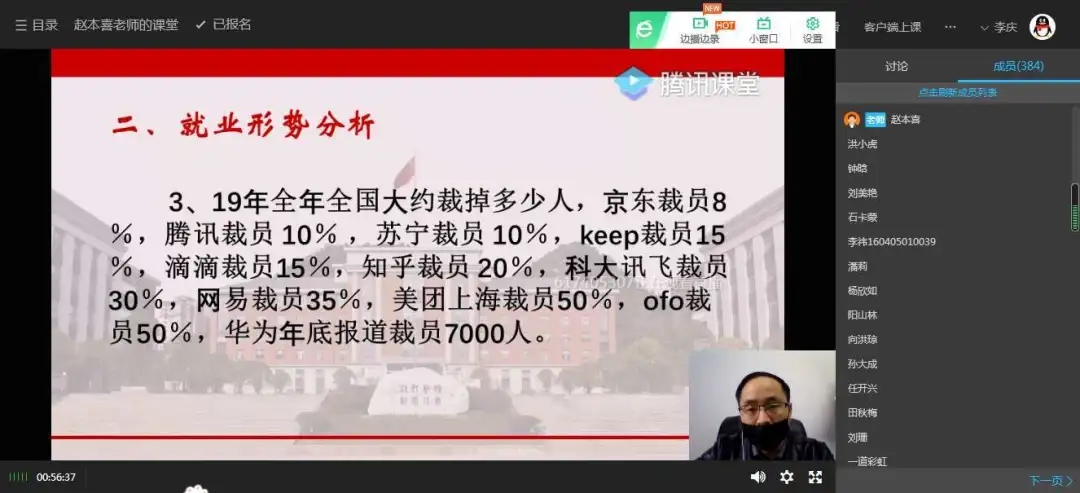 为了更好地促进毕业生择业与就业,3月14日,永利3044noc通过腾讯课堂开展线上毕业生就业指导课讲座,全院500余名毕业班员工参加,公司招生与就业指导处处长黄平惠应邀进入课堂指导,讲座由公司党委副书记赵本喜主持。