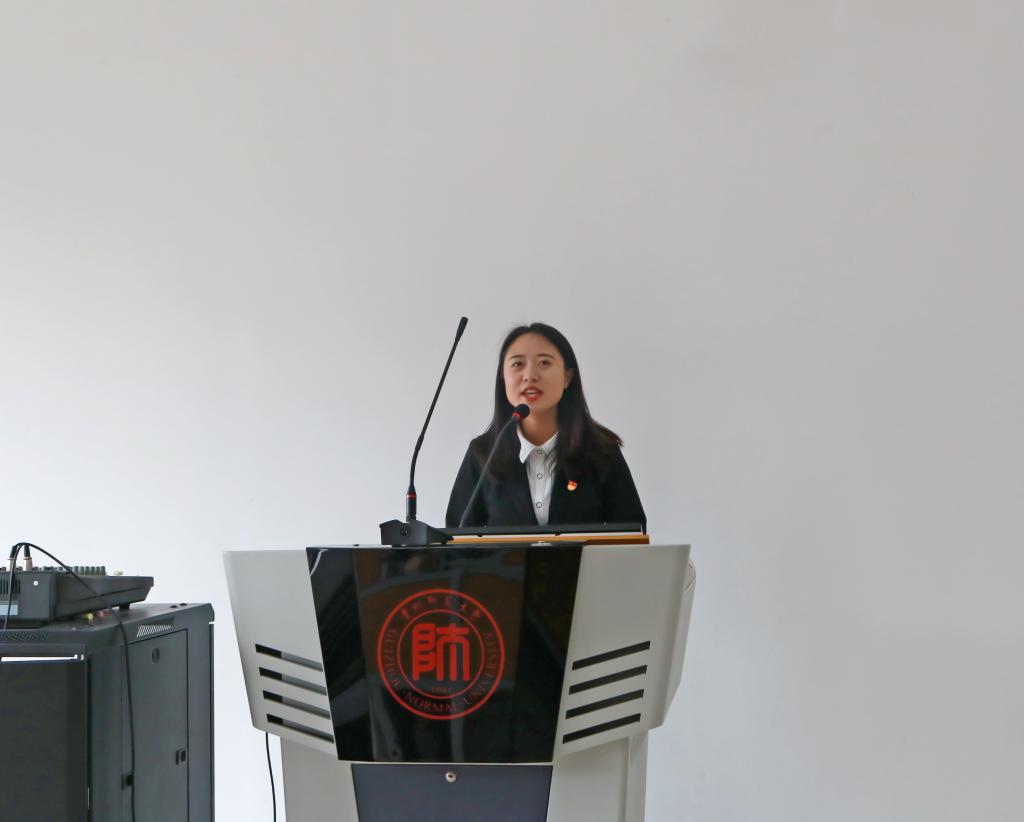 2017级市场营销专业叶利莹代表高年级学长学姐欢迎新同学的到来,她结合自己入校以来的成长经历,向同学们分享了自己在加入中国共产党、专业学习、获取保研资格、参加创新创业竞赛等方面的感悟与收获,并鼓励新同学们要树立人生理想信念,找准自身定位,做好人生规划。