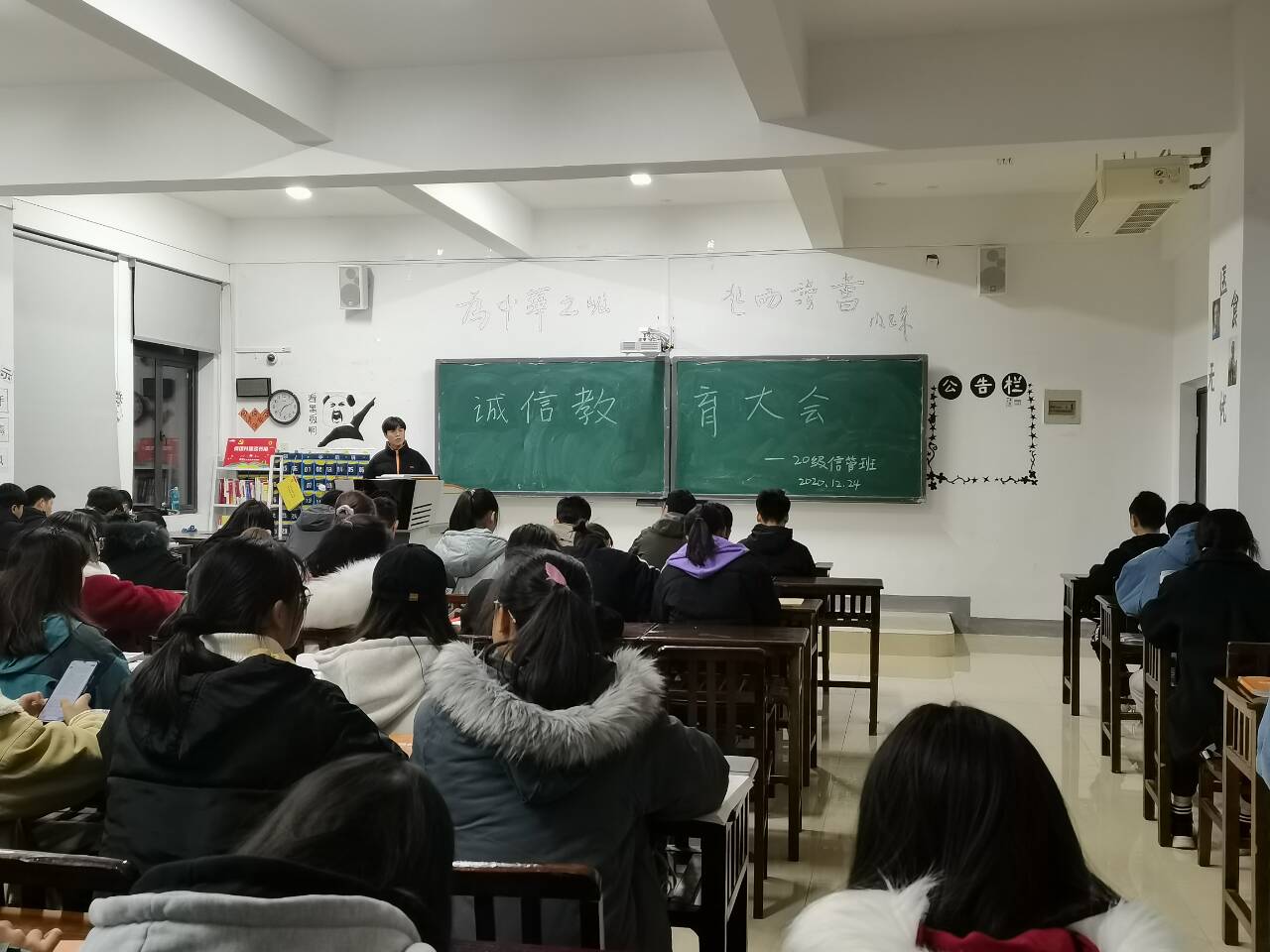 “诚信考试”主题教育活动形式多样、内容丰富。党建办、各团支部充分利用主题会议、主题团日活动、播放视频短片等形式开展。各年级辅导员、党建办员工干部、团支部书记分别从不同角度为同学们讲解了诚信的内涵和意义、备考的方法与考场纪律、诚信的典故以及“习近平总书记谈诚信”等重要内容,教育引导同学们无论是在考场上还是在今后的学习、生活和工作中都要树立诚信意识,从每一件小事着手,养成诚实守信的良好习惯,将诚信内化于心、外化于行,做到诚信做事、诚信做人。