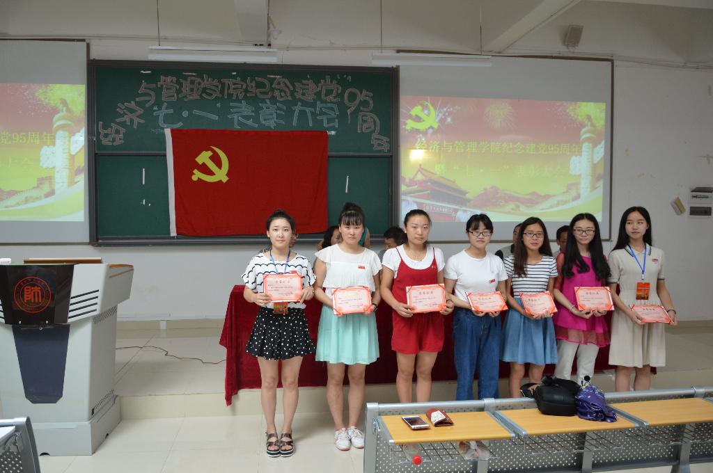 永利3044noc于6月28日下午在花溪校区GJ6301召开纪念建党95周年暨“七·一”表彰大会。公司党委书记陈椽、经理吕萍、副书记项君、副经理王立伟 、杨馥榕、组织员赵本喜出席会议;党委秘书、辅导员、班主任、员工党员、入党积极分子代表等200余人参加了大会。大会由副书记项君主持。