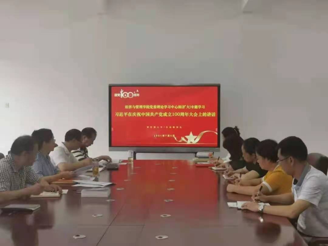 7月5日上午,经济与管理公司党委在花溪校区公司会议室召开党委理论学习中心组(扩大)会议,专题学习习近平总书记在庆祝中国共产党成立100周年大会上的重要讲话。公司党委委员、党政领导班子、科级干部参加了会议...